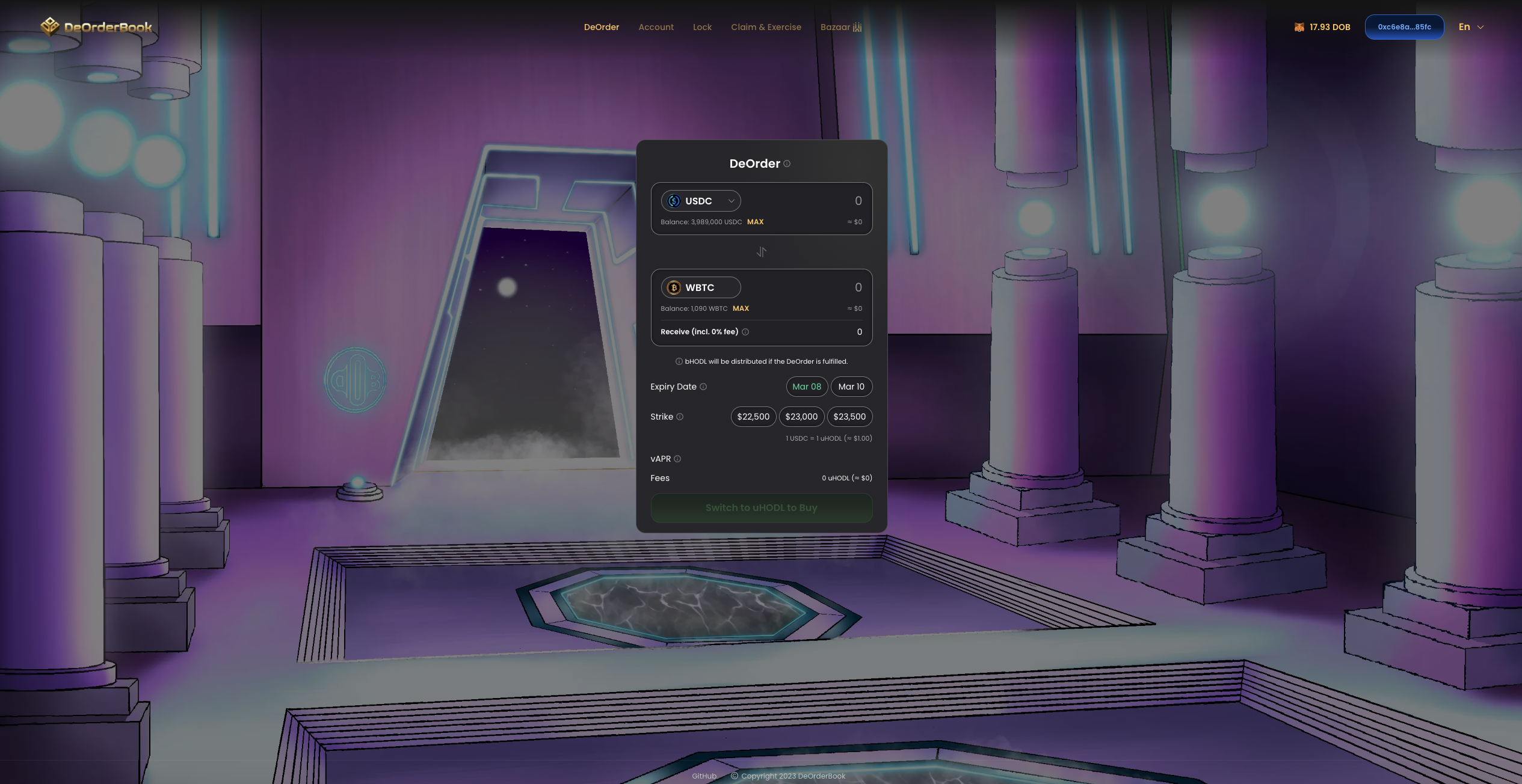 Behind the DeOrder window, users can see into the [Temple of Dobia](https://deorderbook-1.gitbook.io/deorderbook-docs/the-world/concept-and-backstory). It is said that [Dobia](https://deorderbook-1.gitbook.io/deorderbook-docs/the-world/characters) herself constructed the gigantic temple in mere moments as a safe haven for all in the cryptoverse to grow their funds safely and securely.
