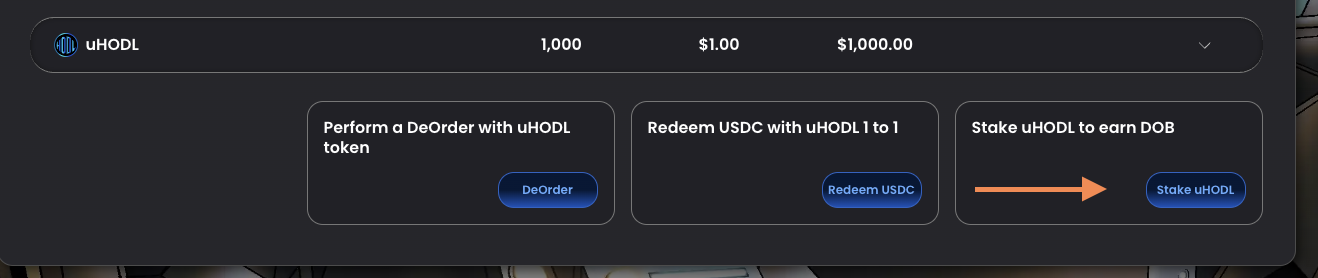 5. Select 'Stake uHODL to earn DOB' from the menu.